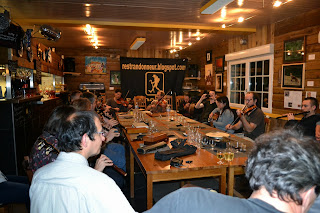 Depuis 6 ou 7 ans, ce groupe d'amis, tous des passionnés de la musique irlandaise se réunit au Randonneur pour fêter la Sainte Cécile. Oui, on sait que ce ne sera que la semaine prochaine, le 22 novembre, mais ils viennent de loin pour se retrouver au Brabant, alors on essaie d'éviter la neige... En fait, à part de quelques vosgiens, ils viennent de l'Alsace, de Reims, de Lyon, de la Bretagne et même de la Suisse... et une fois de plus, ils étaient une bonne trentaine pour faire de la musique jusque tôt le matin.