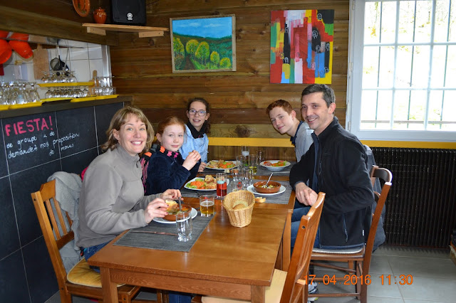 Curieusement, nous avons connu Marina lors d'un enterrement de jeune fille il y a quelques ans et elle - mi-espagnole, mi-alsacienne - a chanté des chansons espagnoles avec Juan ce jour là. Donc contrairement aux garçons qui boivent beaucoup, les filles s'amusent en chantant!! Ce soir, Marina a emmené des amis alsaciens au Randonneur.